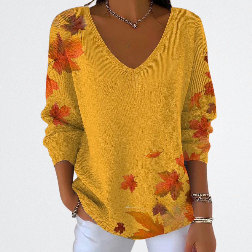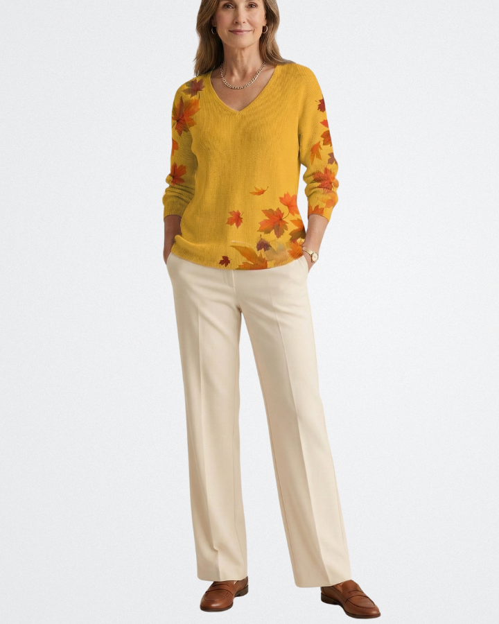 Ez a pulóver olyan, mint egy őszi séta a parkban – meleg, hangulatos és nőies. A mustársárga szín frissességet ad az arcodnak, míg a lehulló falevelek mintája egy kis játékosságot visz a megjelenésedbe. Tökéletes választás hétvégi programokra, otthoni pihenéshez vagy egy barátnős kávézáshoz.
