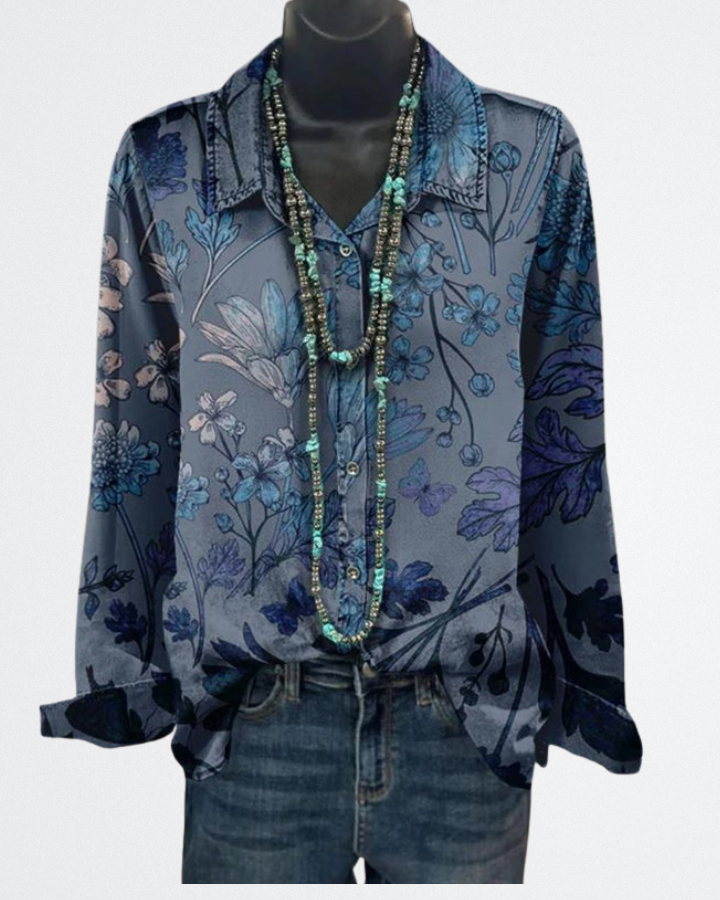Ez a lágy esésű, virágmintás blúz finoman kiemeli a nőiességed anélkül, hogy túlzásba esne. Tökéletes választás irodai napokra, családi vacsorákra vagy egy nyugodt délutáni kávézáshoz.