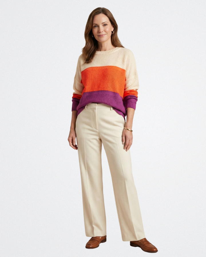 Ez a modern, blokkmintás pulóver azonnal stílust visz a hétköznapjaidba. Tökéletes választás munkába, városi sétákhoz vagy amikor csak szeretnél jól kinézni anélkül, hogy sokat gondolkodnál rajta.
