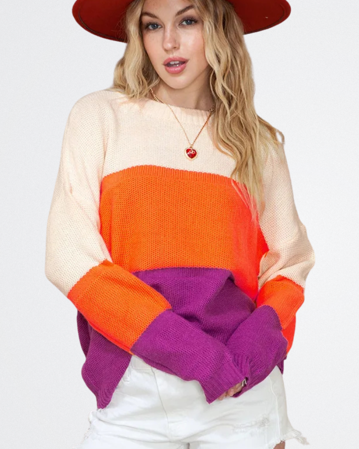 Kaia - Naplemente Csíkos Kötött Pulóver
