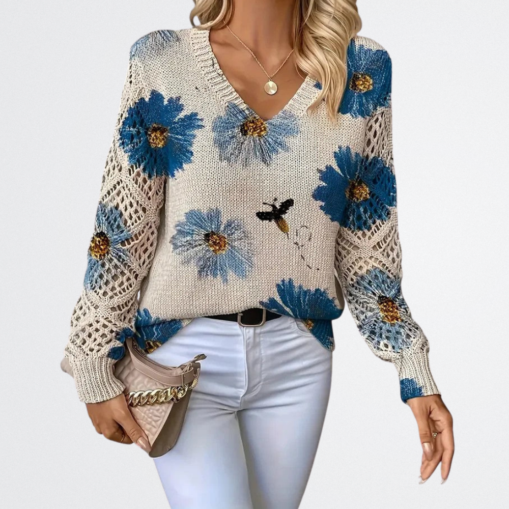 Ez a pulóver gyönyörűen érezteti magát veled, anélkül, hogy erőlködnöd kellene. A lágy virágminták és a horgolt ujjak különlegessé teszik a mindennapjaidat. Tökéletes családi vacsorákhoz, baráti ebédekhez vagy egy kényelmes munkanaphoz, amikor jól szeretnél kinézni.