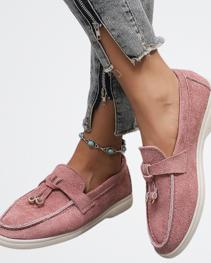 Ez a halvány rózsaszín velúr papucs kifinomult érzést ad Önnek, anélkül, hogy túlságosan meg kellene erőltetnie magát. Tökéletes hektikus reggelekre, laza péntekekre az irodában, vagy egyszerűen csak vásárlásokhoz, amikor jól szeretne kinézni.